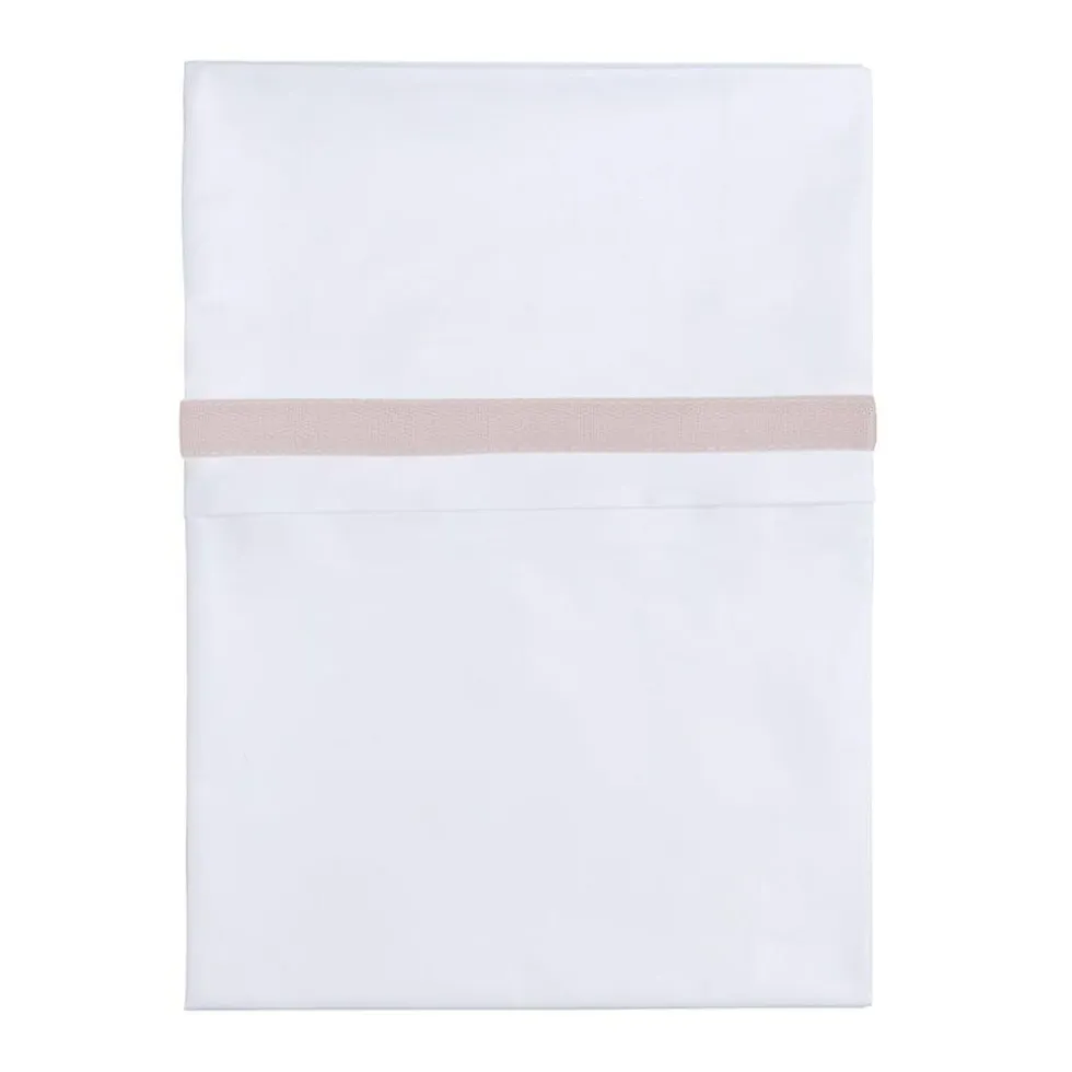 Dit 100% katoenen lakentje heeft een geweven bies in de kleur oud roze.