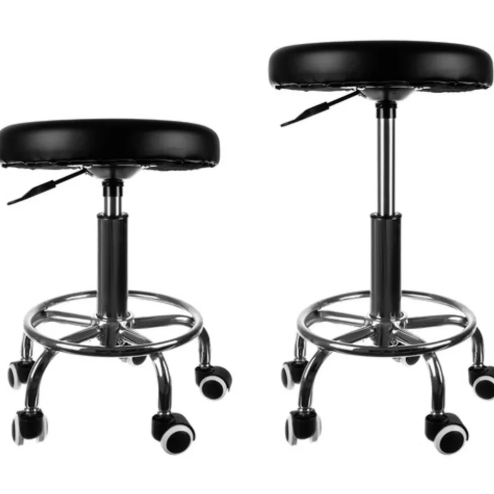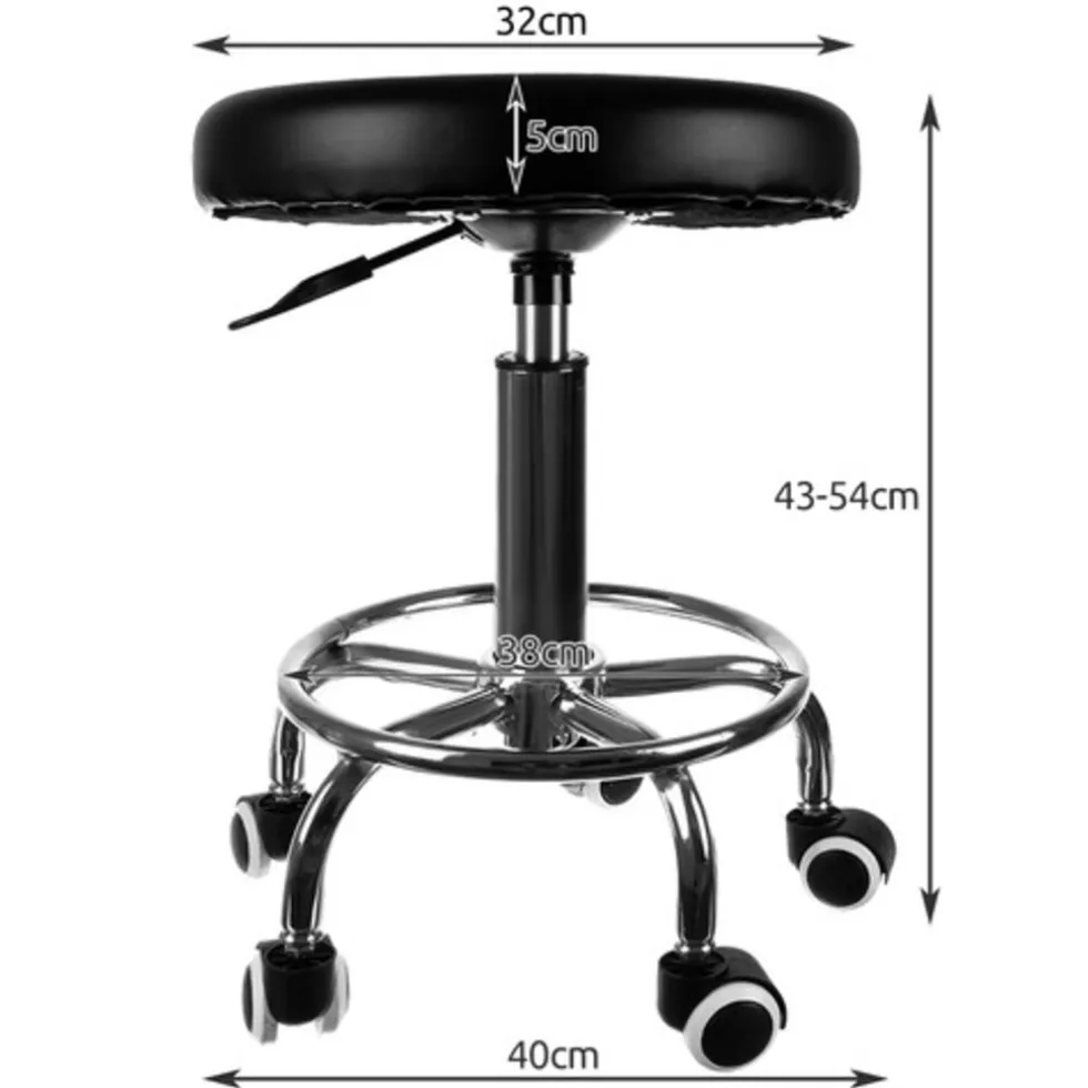 De kapperskruk heeft een extra wiel voor een comfortabele beensteun.