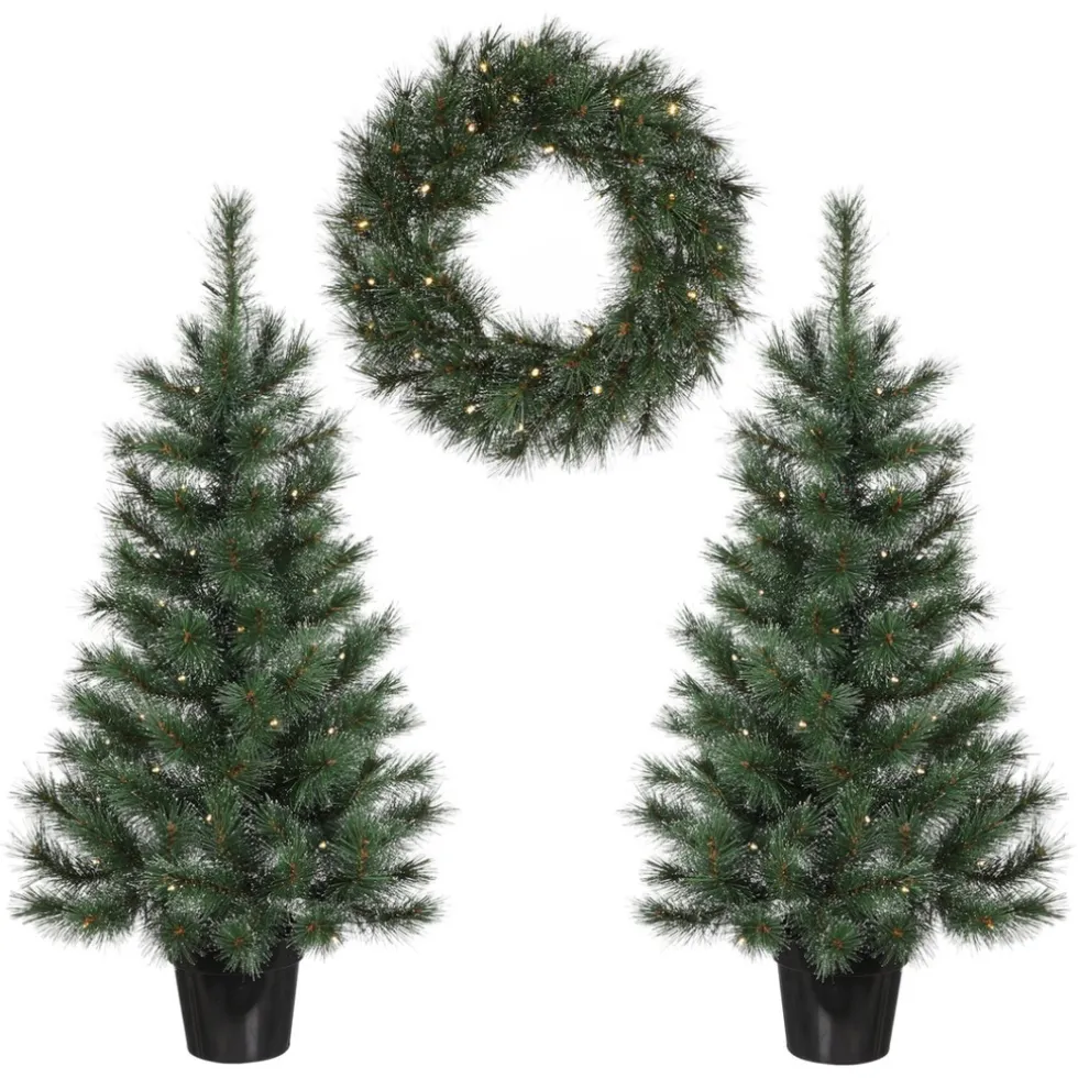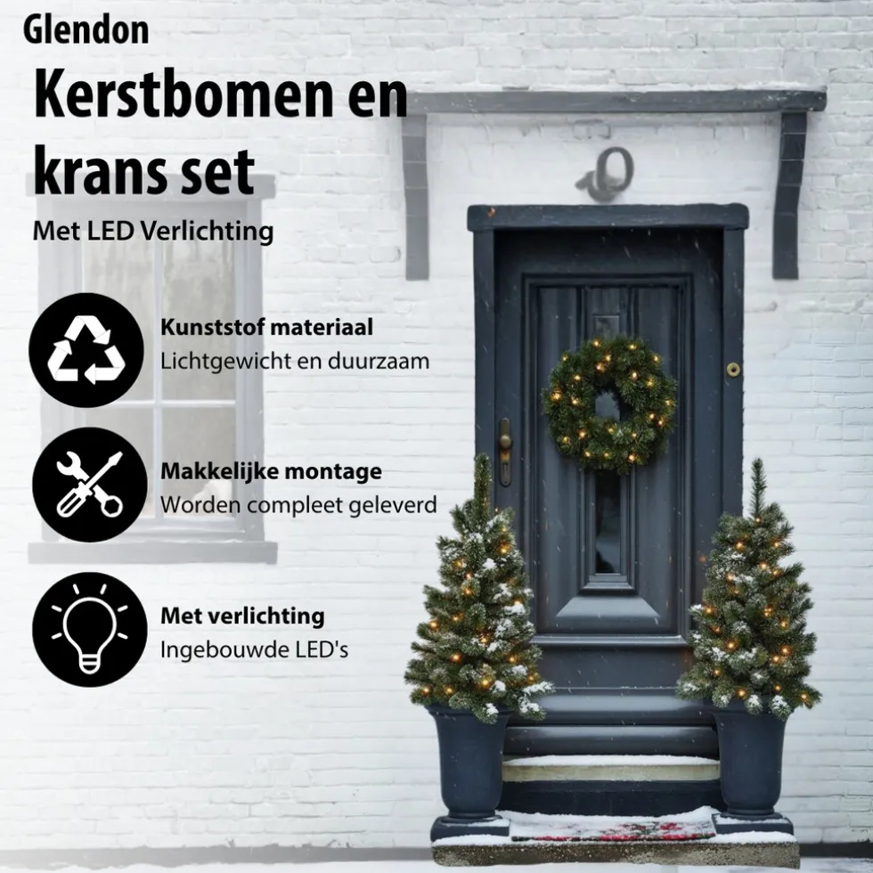 - Twee sfeervolle boompjes en een bijpassende krans voor een complete entree make-over