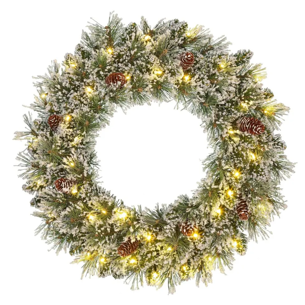 Met de Vandans kunstkrans uit de collectie van Black Box Trees haal je op een gezellige manier de winter in huis. De naaldjes zijn afgewerkt met een wit laagje kunstsneeuw en is leuk gedecoreerd met dennenappels. In de krans zitten al 30 energiezuinige LED lampjes verwerkt die een warm wit licht uitstralen. De verlichting werkt op 3 AA batterijen. De harde dennennaalden zijn zeer stevig, waardoor de takken mooi in model blijven. De binnenste takken zijn voorzien van zachte PVC naaldjes die de krans mooi opvullen. Versier hem eventueel nog met wat decoraties en hang hem op! Leuk voor aan een deur, of leg hem neer als kerststukje. De Vandans krans is verkrijgbaar in diverse maten, deze heeft een diameter van 60 cm. Wordt geleverd met 2 jaar garantie op zowel de krans als de verlichting.