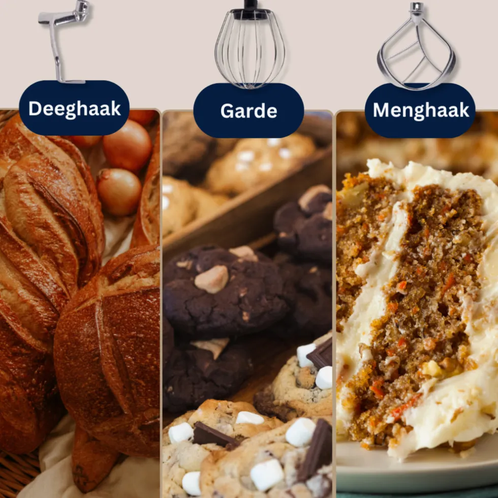 Dankzij het orbitale roersysteem van de BluMill keukenmachine kan het apparaat gebruikt worden voor het kneden, mixen of kloppen van verschillende ingrediënten. Met zijn garde, deeghaak en platte klopperbevestiging kan de keukenmachine zwaar pastadeeg en zuurdesem net zo gemakkelijk mengen als luchtige mengsels zoals lichte desserts, eiwit of slagroom. Ook wanneer u een taart, cake of sauzen wilt maken is deze keukenmachine ideaal. Met de 6 snelheden en een puls-functie kiest u de juiste snelheid van de keukenmachine bij de bereiding en maakt u de lekkerste gerechten met minimale inspanning.