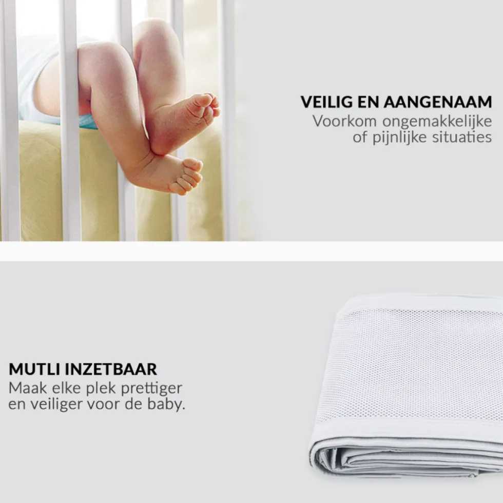 Een wiegje is natuurlijk gemaakt van harde materialen en hoewel baby’s natuurlijk wel tegen een klein stootje kunnen wil je ze het liefst volledig beschermen. Je kunt deze bumper gemakkelijk langs de randen van de wieg neerleggen zodat de baby in ieder geval niet zijn of haar hoofdje stoot in haar slaap of tijdens het spelen.