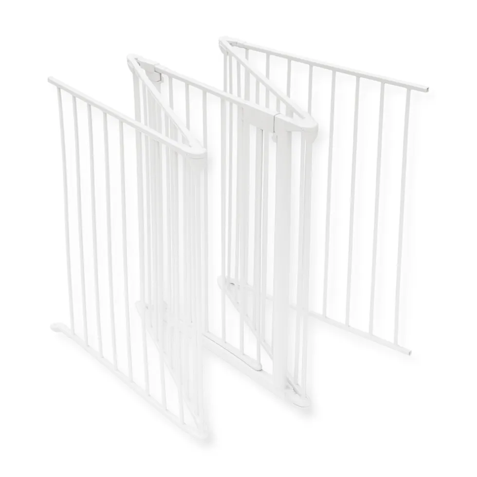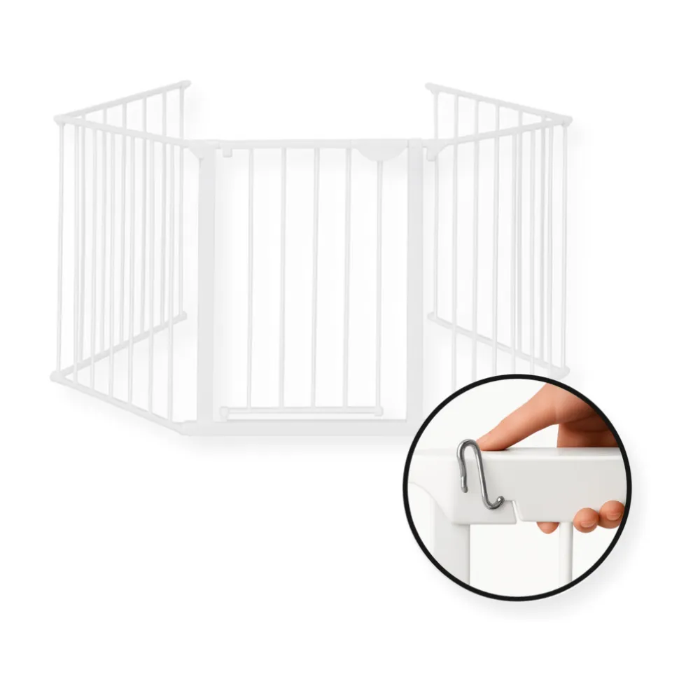 Dit veelzijdige hek kan dienen als een extra brede poort, een barrière rond open haarden, kachels, kerstbomen en nog veel meer. Met verstelbare, roterende verbindingen kan je hem op talloze manieren vormgeven. De volledig stalen frameconstructie biedt sterkte en ondersteuning waarop u kunt vertrouwen en waarop u kunt vertrouwen om uw kind veilig te houden. Het veiligheidshekje van Buxibo kan ook worden gebruikt als huisdier box, ideaal voor gebruik binnenshuis en buitenshuis in uw tuin. Werkt geweldig als puppy-box of als oefengebied voor niet-klimmende kleine dieren.