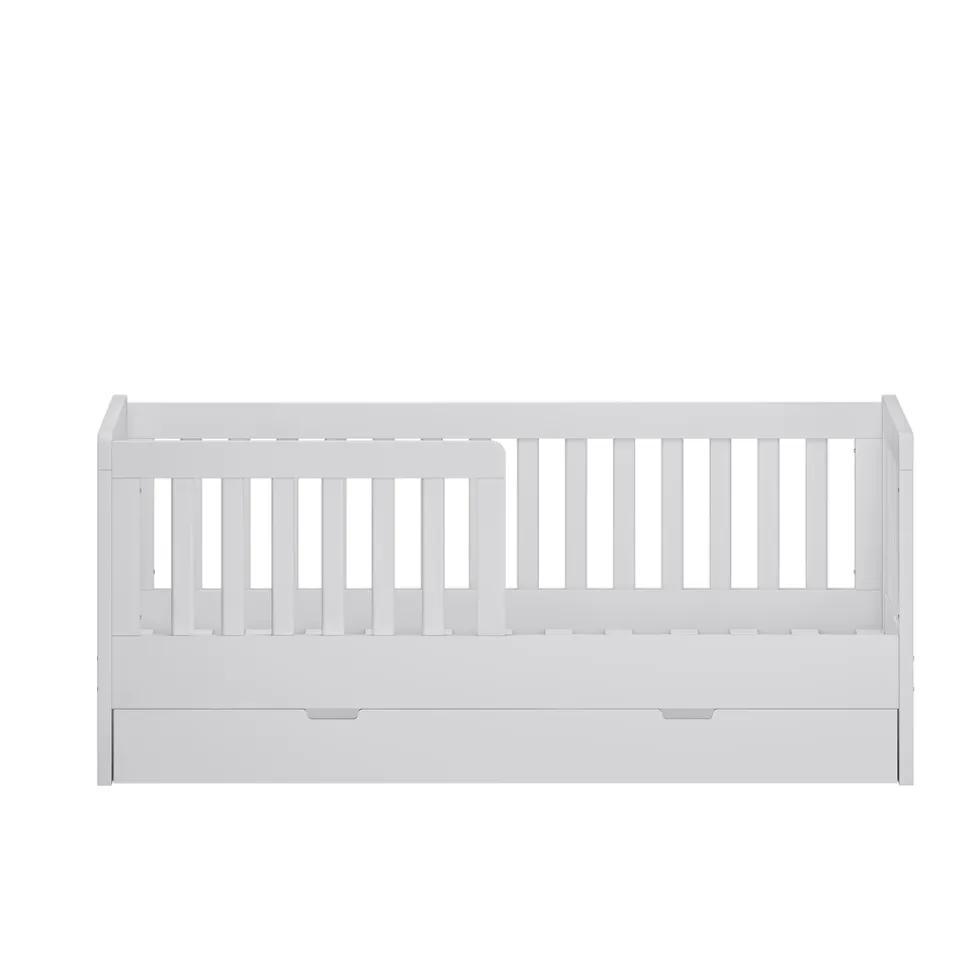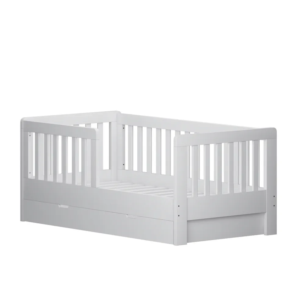 Peuterbed Joan biedt een veilige en stijlvolle slaapplek voor je kindje. Het peuterbed heeft een strakke witte kleur, waardoor het mooi zal staan in iedere ruimte. Het bed biedt niet alleen optimaal comfort, maar ook slimme opbergruimte dankzij de handige lade onder het bed. Hierin kan speelgoed, beddengoed of wat anders overzichtelijk worden opgeborgen. Ideaal voor een opgeruimde kinderkamer!