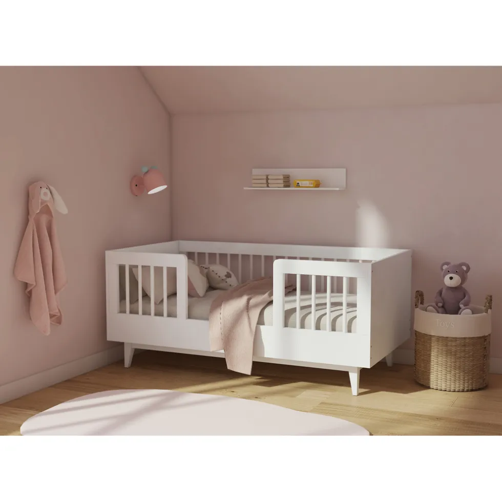 De stevige houten lattenbodem en de verhoogde zijranden zorgen ervoor dat je peuter rustig en veilig kan slapen. Via de opening in de zijrand kan je kindje zelfstandig in en uit het bedje klimmen. Met het formaat van 70 x 140 cm is het bed ideaal voor peuters die de overstap maken van een ledikant naar een groter bed.