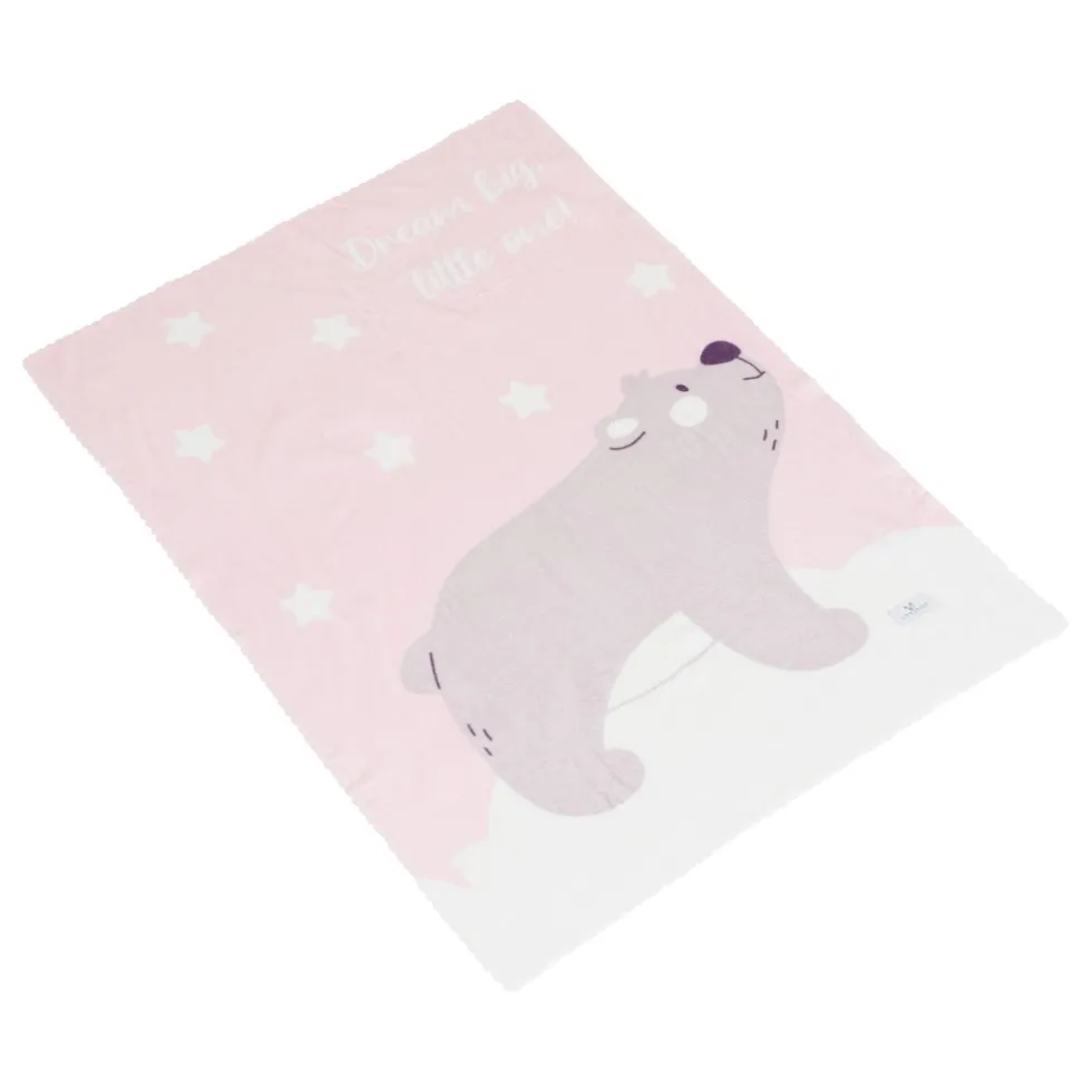 Het dekentje is gemaakt van polyester en voelt zacht aan op het babyhuidje. Hij is 75 x 100 cm groot en daardoor perfect te gebruiken in een wiegje, daarnaast is hij machine wasbaar op 30°C.