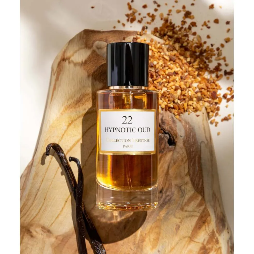 Laat je betoveren door Hypnotic Oud van Collection Prestige, een geurige symfonie van verfijnde tonen. De sprankelende topnoten van roos, salie en saffraan leiden naar een hart van mirre, amyris, oud en gurjum balsem. De aardse basis van patchouli, vetiver, cypriol en guaiac hout creëert een blijvende indruk van tijdloze elegantie. Ervaar de allure van Hypnotic Oud en omhul jezelf met zijn intrigerende aura.