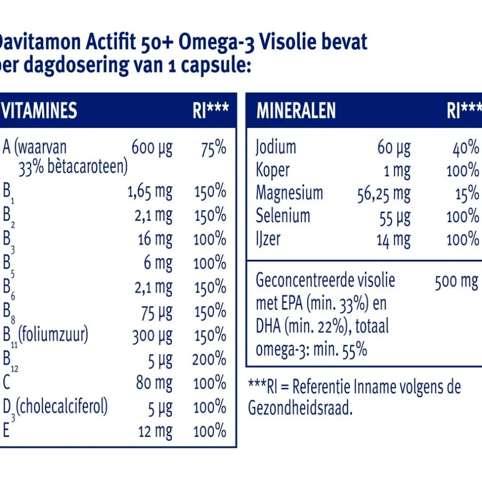 Over Davitamon Actifit 50+ Omega-3 Visolie Multivitamine & Mineralen Capsules: