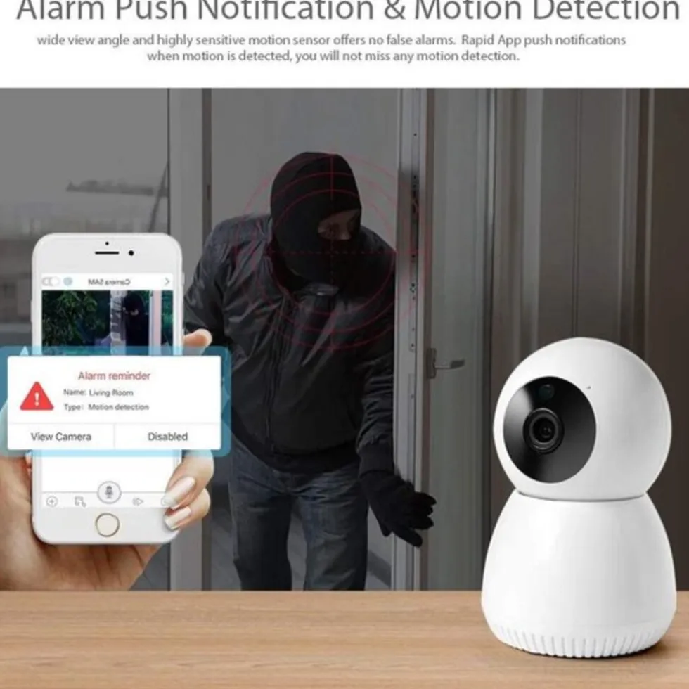 De camera beschikt ook over een bewegingsdetectie. Dit betekent dat de camera bewegingen signaleert en deze opneemt wanneer die plaats vinden in beeld.De camera kan 355° om zich heen draaien en 60° van boven naar beneden.