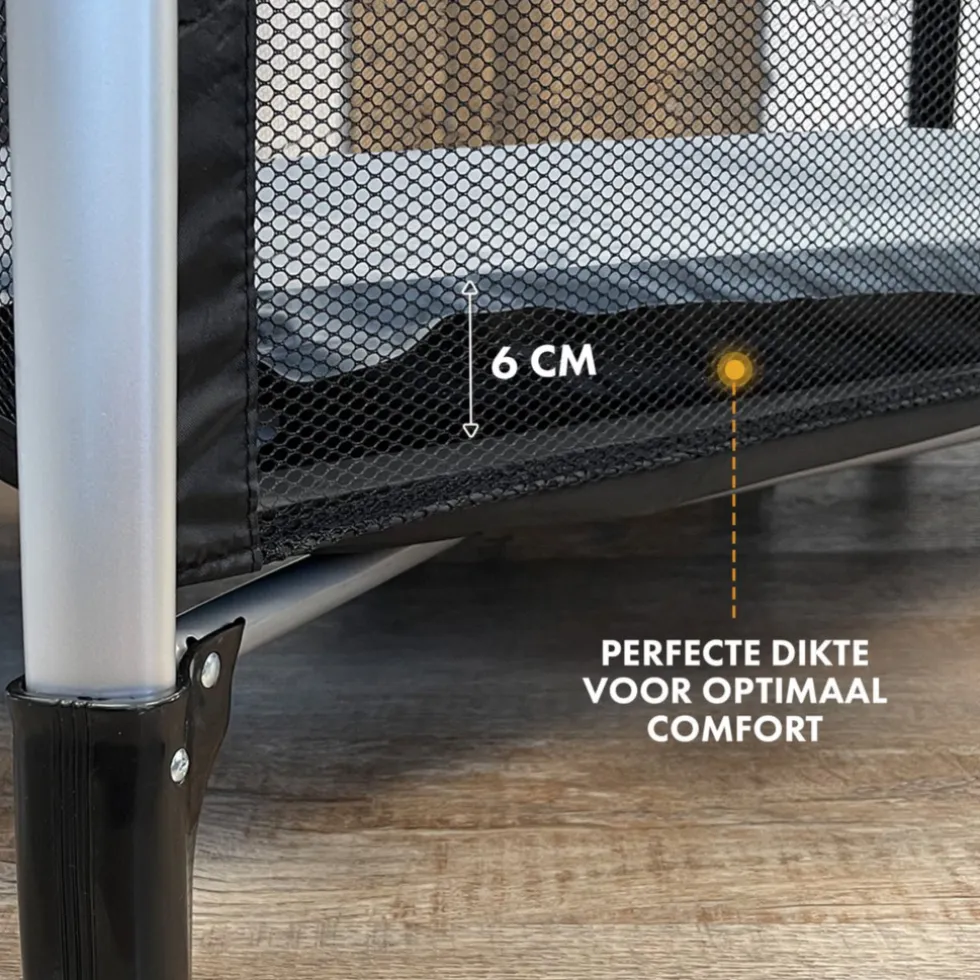 Het matras is geschikt voor alle reisbedden en kinderbedjes met een bedoppervlak van 120×60 cm. Dankzij de dikte van 6 cm biedt het uitstekende ondersteuning en extra comfort voor je kindje tijdens het slapen. De zachte afwerking zorgt ervoor dat je kindje heerlijk ligt, of dat nu thuis is of tijdens een logeerpartij.