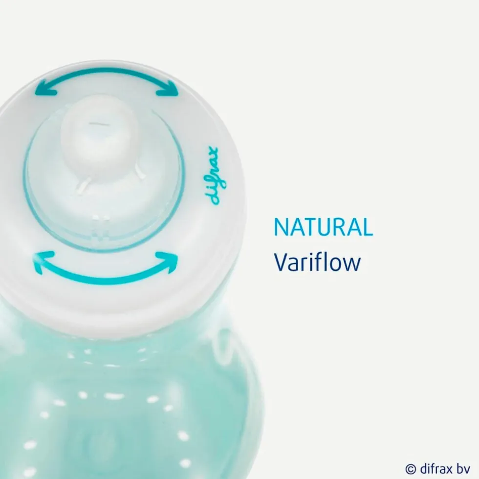 De Difrax Natural flessenspeen past op alle varianten van de Difrax Natural S-fles (170 ml en 250 ml) en de Difrax handgreepflessen. Ook passen ze op Dr. Brown’s flessen en op andere merken smalle babyflessen.