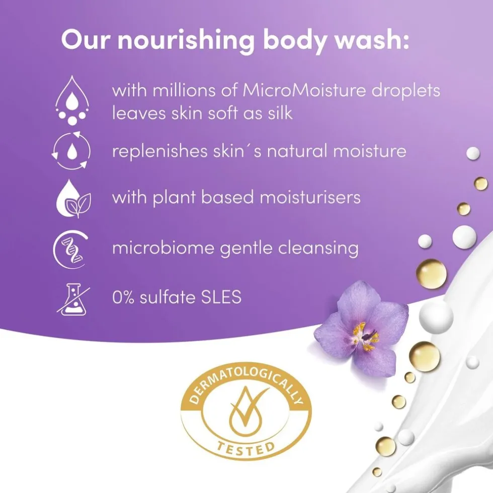De Dove Relaxing douchegel bestaat voor 94% uit natuurlijke ingrediënten. De douchegel bevat vijf verschillende ingrediënten van natuurlijke oorsprong zoals prebiotische voedingsstoffen, plantaardig extract, milde plantaardige reinigers en plantaardige voedende en vochtinbrengende bestanddelen. Hierdoor wordt je huid versterkt tijdens elke douchebeurt, zonder dat de natuurlijke huidmicrobioom wordt aangetast. De verzorgende formule van Dove Relaxing geeft onmiddellijke en langdurige voeding aan de huid, op een natuurlijke manier.