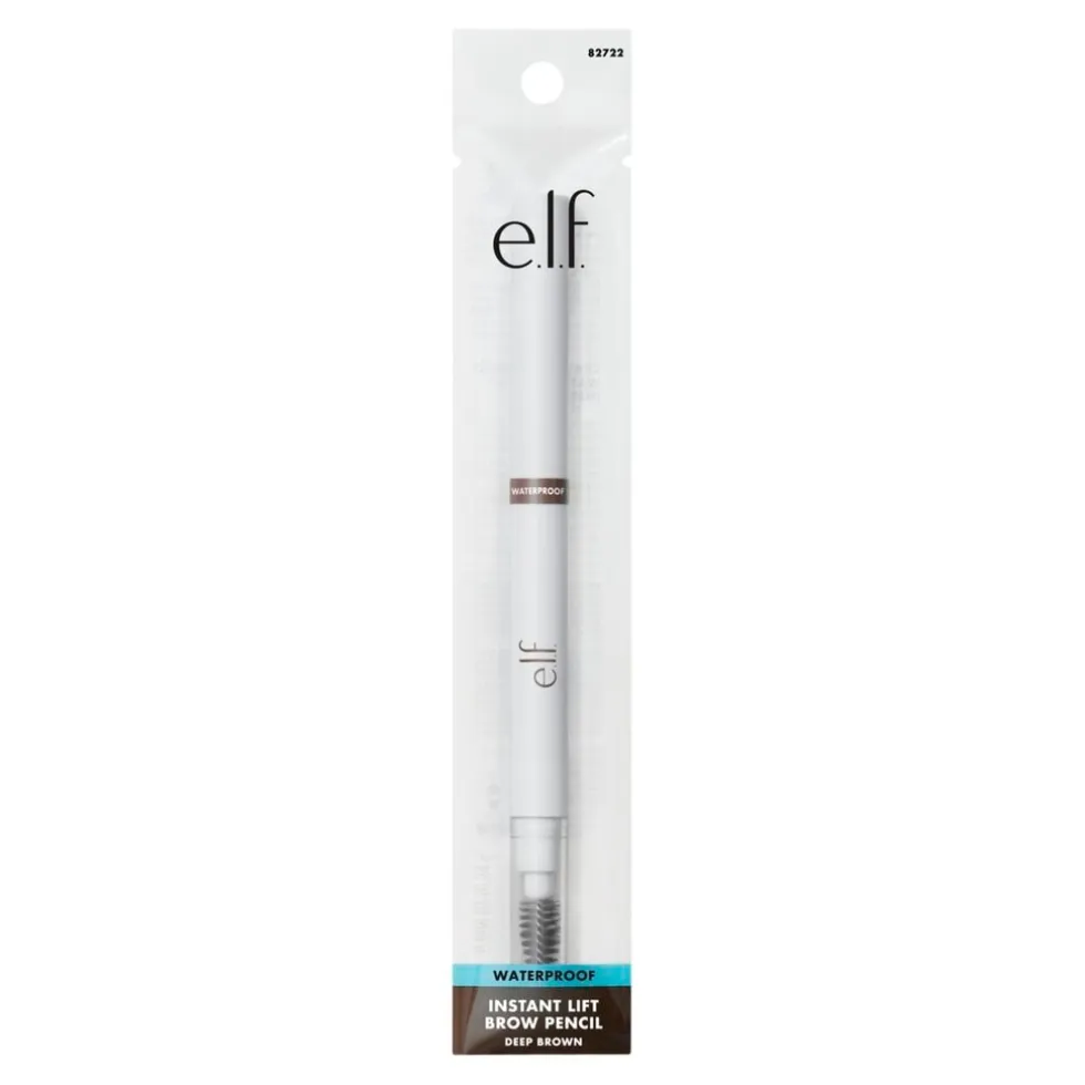 De e.l.f. Waterproof Deep Brown Instant Lift Brow Pencil heeft twee uiteinden: een waterproof wenkbrauwpotlood en een spoolie waarmee je je wenkbrauwen vormgeeft, opvult en definieert.