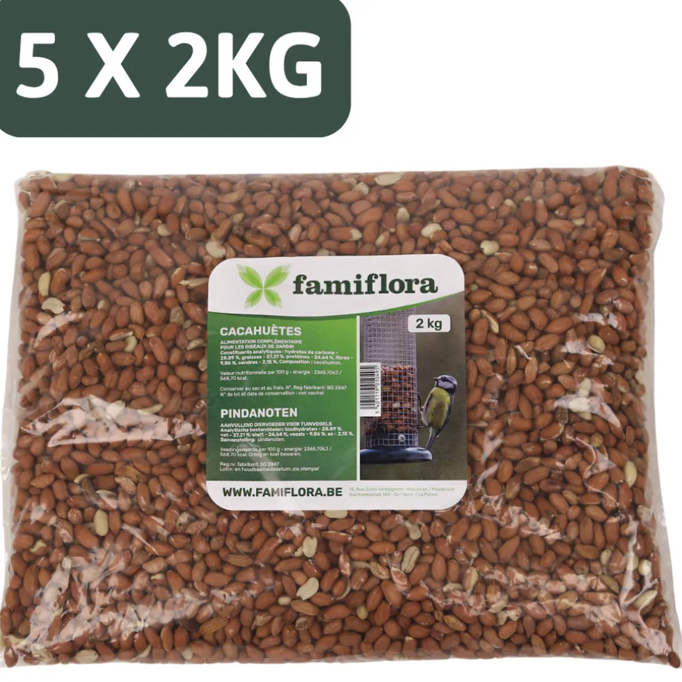 Je kan een speciale pinda feeder opvullen met de nootjes zodat je deze makkelijk een plekje in de tuin, boom… kan geven.