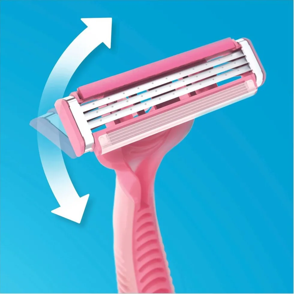 Deze wegwerpscheermesjes met 3 mesbladen zorgen voor een extra glad scheerresultaat en hebben een draaiend, afgerond scheerhoofd. Het scheerhoofd van de Gillette Simply Venus3 Wegwerpscheermesjes volgt de rondingen van je lichaam.