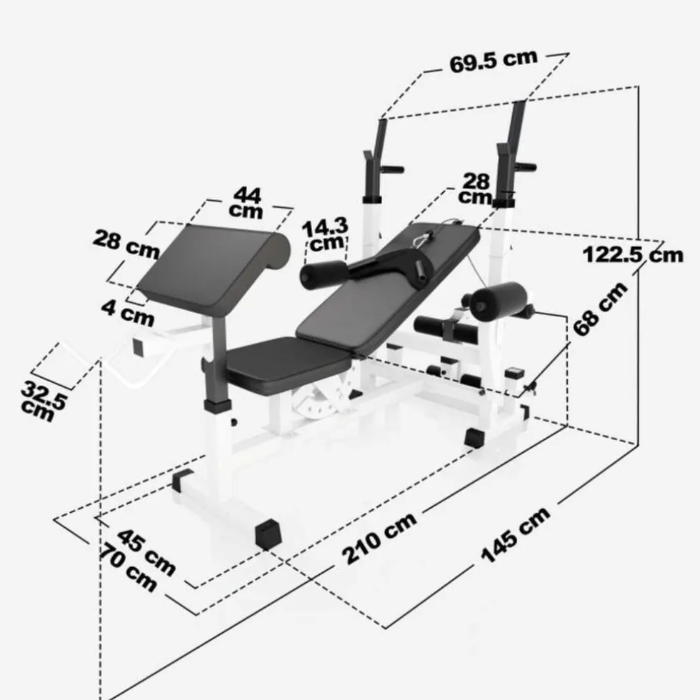 Deze halterbank is ontworpen om je training zo flexibel mogelijk te maken. Je kunt de rugleuning en zitting eenvoudig verstellen om de perfecte positie te vinden voor oefeningen zoals bench presses, incline presses, leg curls en leg extensions. De stevige constructie geeft je de zekerheid dat je veilig kunt trainen, zelfs met zware gewichten, en het compacte formaat maakt hem makkelijk in je homegym te plaatsen.