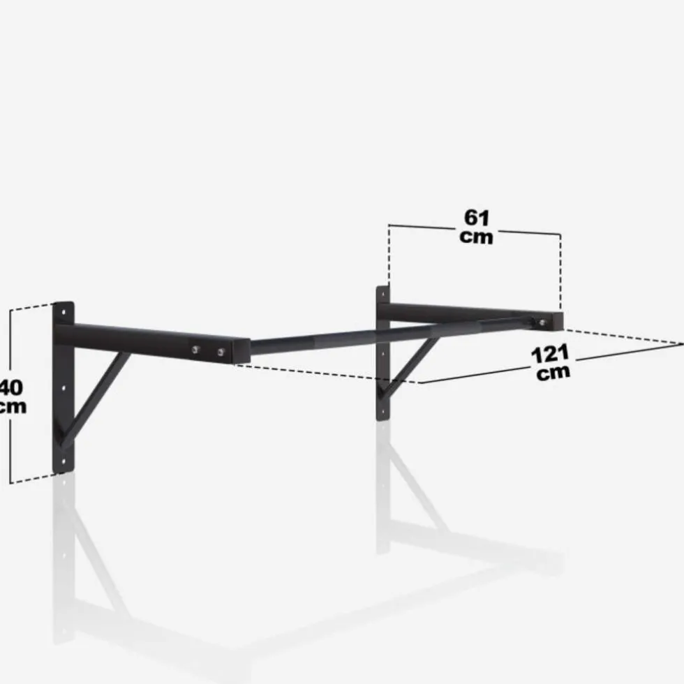 Wat moet je nog meer weten over de optrekstang voor aan de muur?Dankzij de speciaal gegroefde oppervlakken op de handgreep is er altijd een veilige houvast. Het handvat zelf is 108 cm lang genoeg om elke vorm van pull-up oefening perfect uit te voeren. De muurbeugels zijn van hoge kwaliteit en met de juiste montage niet van de muur te halen. Zo hoef je je geen zorgen te maken en kun je je volledig concentreren op jezelf en je krachttraining.