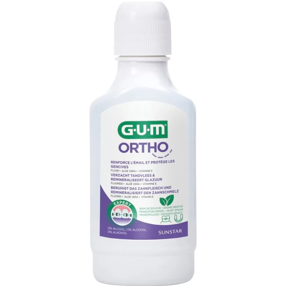 verzacht tandvlees & remineraliseert glazuurGUM® ORTHO is een dagelijks anti tandplak mondspoelmiddel speciaal samengesteld voor verbeterde preventie van tandbederf en bescherming van het tandvlees.• Bevat natriumfluoride + isomalt voor een sterke remineralisatie van het glazuur, wat cruciaal is voor het voorkomen van witte vlekjes.• Vermindert de opbouw van tandplak dankzij Cetylpyridinium Chloride.