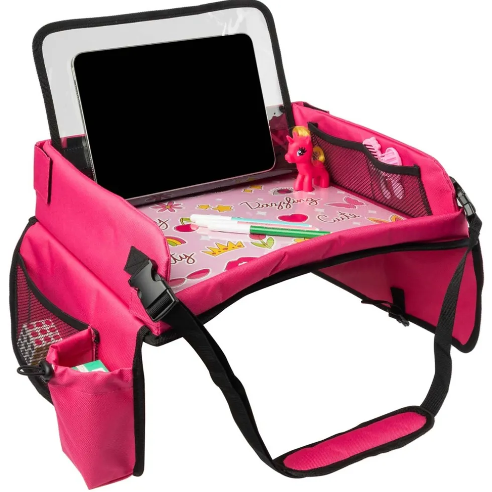 Een speciaal vak voor tablets tot 13 inch, 7 opbergvakjes, opbergruimte voor ongeveer 6 stiften en een bekerhouder. Deze reistafel is multifunctioneel! Daarnaast heeft de auto organiser een handige transparante laag waar je een kleurplaat onder kunt schuiven en is het oppervlak goed te gebruiken om met klein speelgoed op te spelen.