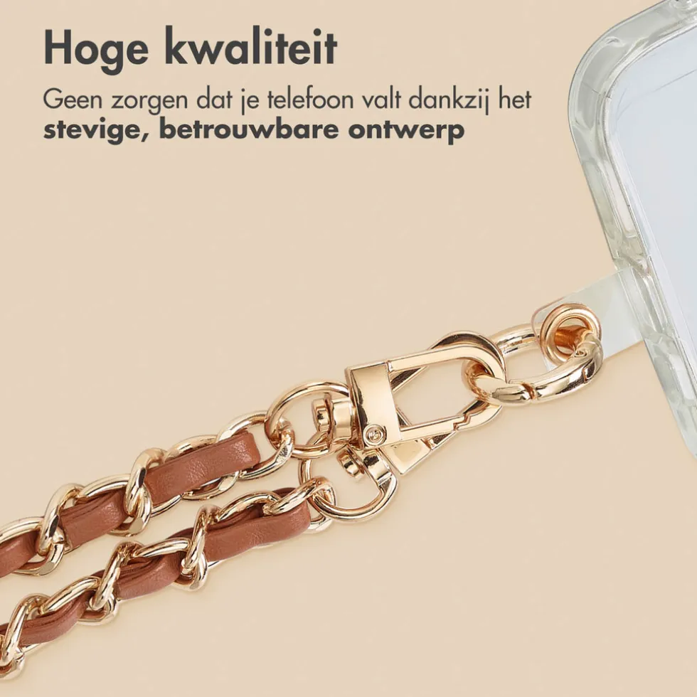 De koorden zijn gemaakt van PU-leer, gevlochten door een metalen ketting, waardoor je smartphone een echt fashion item wordt. Of je nu naar een feestje gaat of je dagelijkse outfit een boost wilt geven, dankzij dit stijlvolle koord maak jij je outfit helemaal af!
