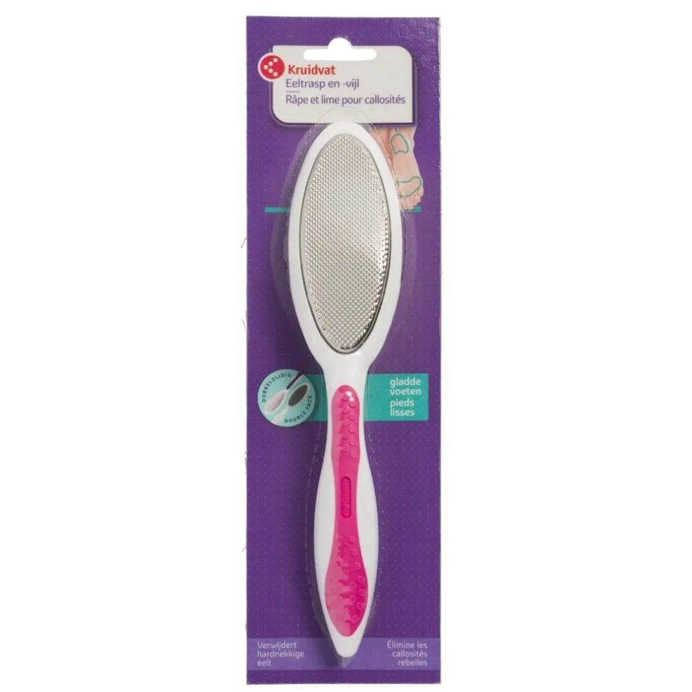 Verwijder hardnekkig eelt met de Kruidvat Eeltrasp en -Vijl. De anti-slip grip en de gebogen vorm maken het verwijderen eenvoudig, zelfs op moeilijk bereikbare plekken.