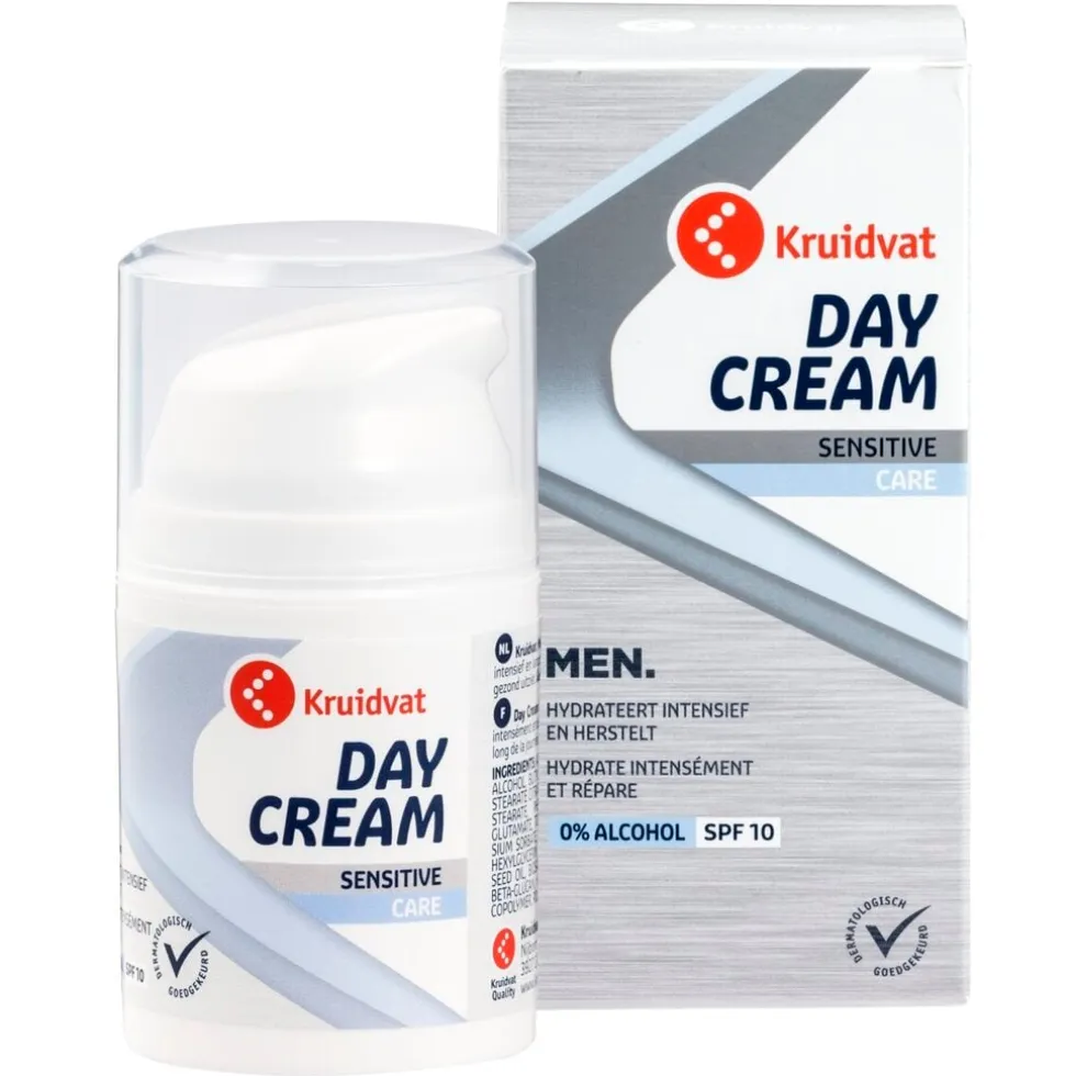 Hydrateert intensief en helpt de huid herstellen.Kruidvat Men Day Cream Sensitive Care voor de gevoelige huid hydrateert de huid intensief en langdurig zodat deze gedurende de dag niet trekt of branderig aanvoelt en er gezond uitziet.Deze dagcrème met UVA/UVB-filters (SPF15):• kalmeert de huid bij irritaties en roodheid• helpt de huid herstellen