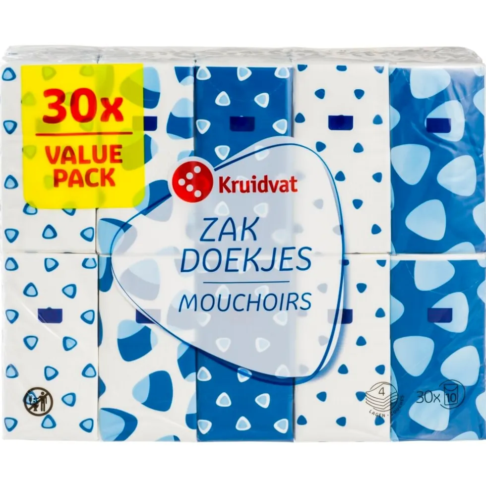 Voorkom een rode, schrale neus met Kruidvat Zakdoekjes. De zakdoekjes zijn 4-laags, superzacht en sterk.