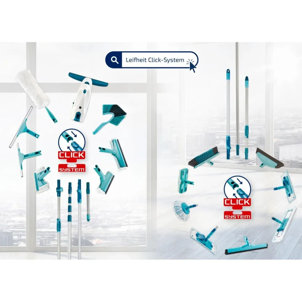 - De telescoopsteel is compatibel met andere Leifheit Click-Systeem-producten
