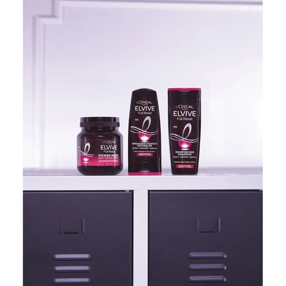 De L’Oréal Paris Full Resist Power Shampoo is ontwikkeld voor kwetsbaar, breekbaar haar, met een neiging tot uitvallen*.