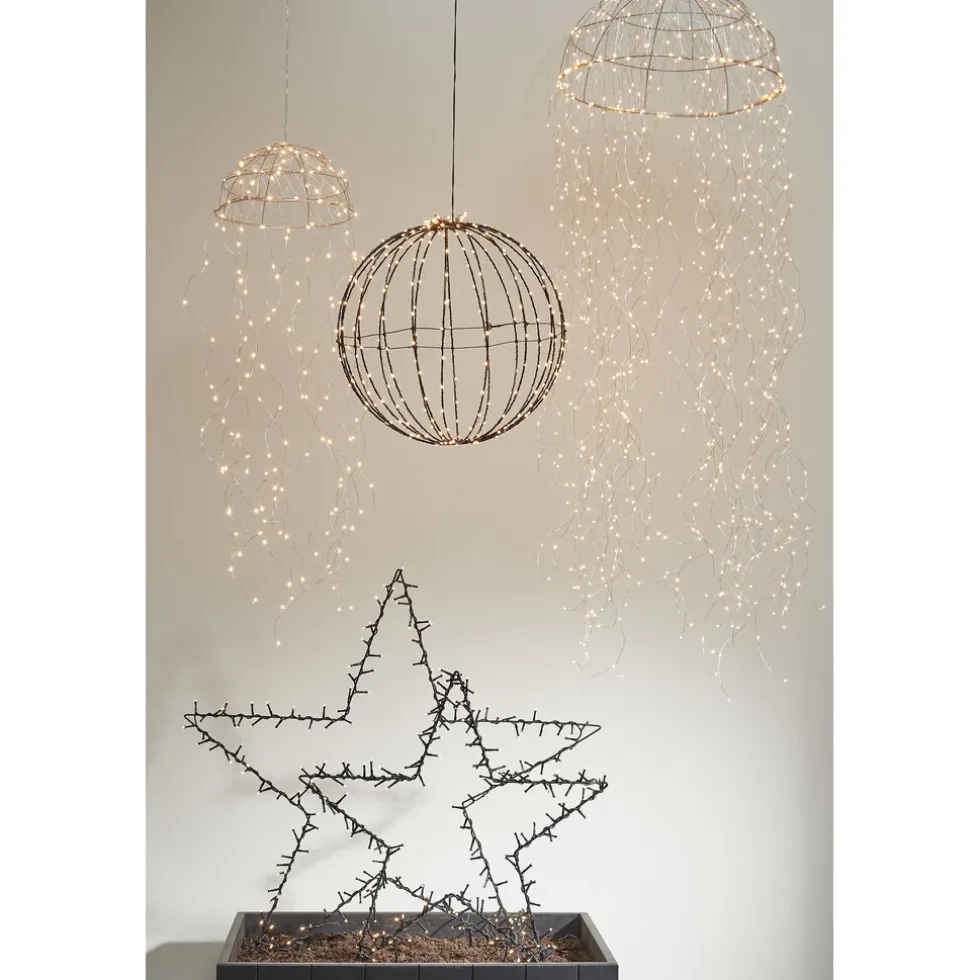 Maak het extra gezellig in de tuin met de kerstverlichting voor buiten van Luca Lighting. Bijvoorbeeld met deze verlichte bal om op te hangen! Het frame is gemaakt van metaal en heeft een zwarte kleur. Eromheen zit een snoertje met in totaal 320 LED lampjes gewikkeld die een warm wit licht uitstralen. Door middel van de timer kan de verlichting zo worden ingesteld dat hij automatisch aan- en uitgaat. Handig! Daarnaast is de meegeleverde adapter met een aansluitsnoer van 3 meter spatwaterdicht. Heb jij er al een leuke plek voor gevonden? De decoratieve bal heeft een diameter van 50 cm.
