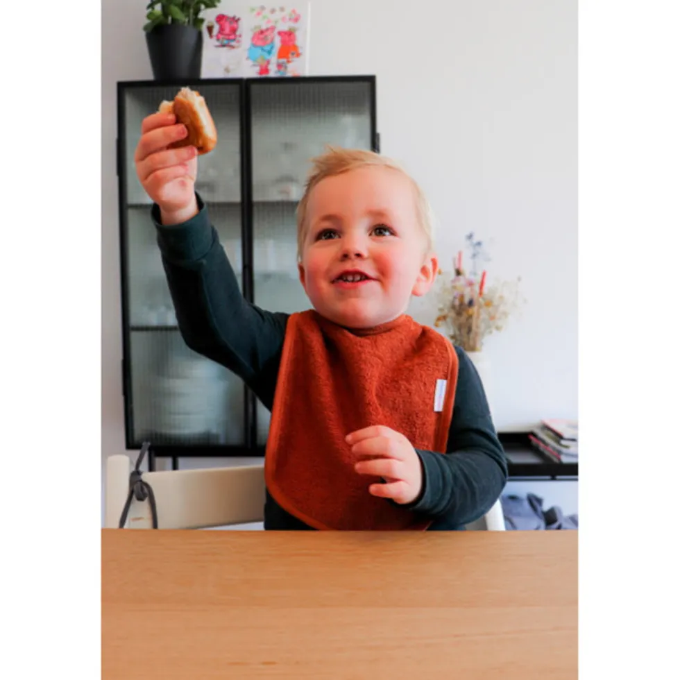 Het slabbetje is gemaakt van 100% katoen, lekker comfortabel dus. De slab is wasbaar in de wasmachine op 40ºC. Daarnaast is de slab geschikt voor in de droger en mag hij gestreken worden. Eet smakelijk!