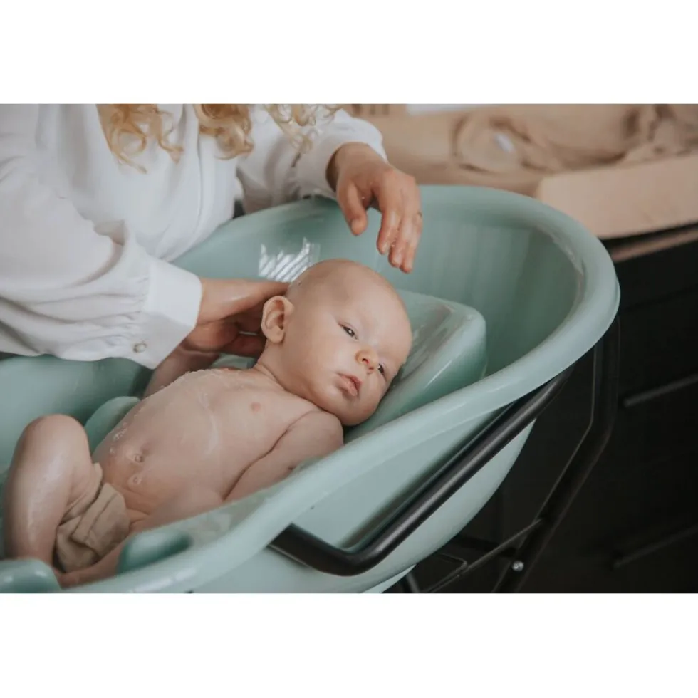 • Kan bevestigd worden op de MamaLoes badstandaard geschikt voor een gewicht (baby + water) tot max. 20 kg (badstandaard niet inbegrepen)
