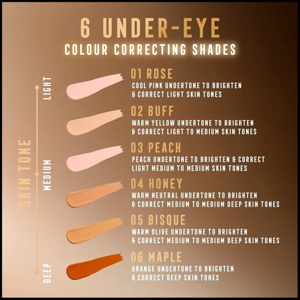 • Samengesteld op basis van huidverzorgingsingrediënten, waaronder cafeïne en vitamine C, om donkere kringen en wallen langdurig te reduceren