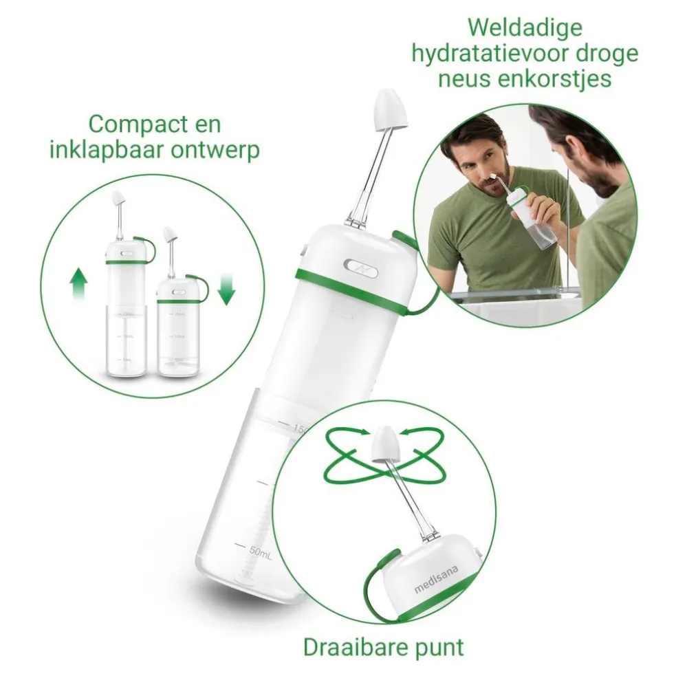 De Medisana NI 200 Neusdouche biedt een moderne oplossing voor je dagelijkse neusverzorging. Dankzij het gebruiksgemak en de automatische uitschakeling na twee minuten is de neusdouche ideaal voor thuisgebruik of onderweg.