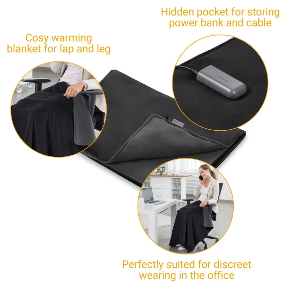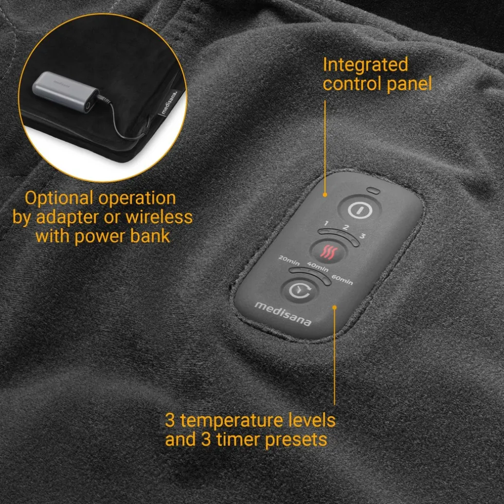 Bijzonder handig: de OL verwarmingsdeken kan zowel met een powerpack als draadloos met een oplaadbare powerbank worden gebruikt. Hij is dus niet alleen ideaal voor gebruik binnenshuis, maar kan ook zonder problemen buitenshuis worden gebruikt of onderweg worden meegenomen. De OL 200 heeft een klein, verborgen zakje met rits voor de powerbank en de kabel, waarin beide gemakkelijk kunnen worden opgeborgen.