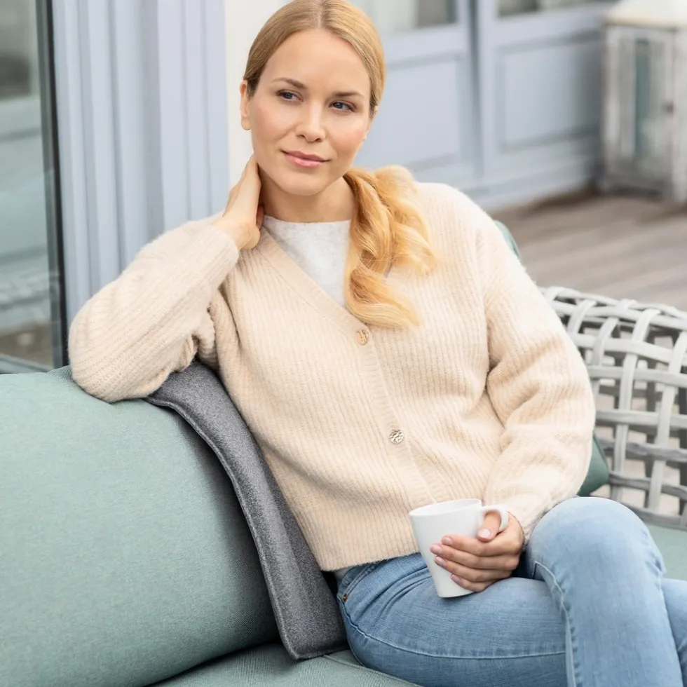 Verder zit er een onderhoudsvriendelijke, wasbare kussenhoes met ritssluiting om het kussen heen. Wel zo fris, om de hoes op zijn tijd een wasbeurt te geven! Het kussen schakelt automatisch uit na 20 minuten.