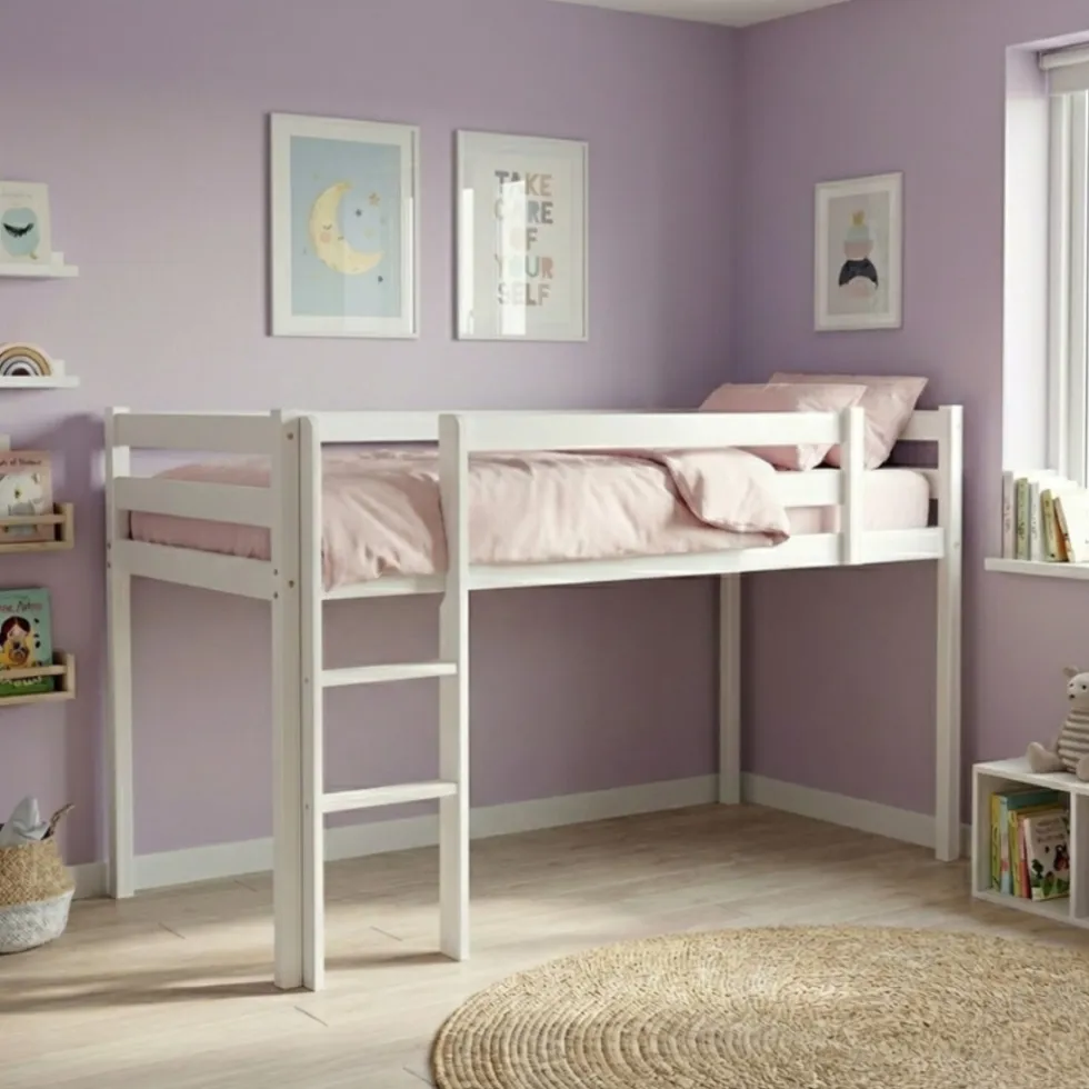 De Milan halfhoogslaper wit inclusief rol lattenbodem is een stijlvolle en praktische toevoeging aan elke kinderkamer. Dit bed is speciaal ontworpen voor kinderen die houden van avontuur en comfort. Dankzij het verhoogde ontwerp ontstaat er onder het bed extra ruimte die gebruikt kan worden voor opbergruimte of als gezellige speelplek. Zo benut je de ruimte in de kamer optimaal, zonder in te leveren op stijl of functionaliteit.
