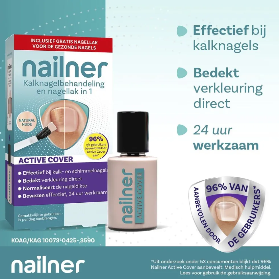 Nailner Active Cover Kalknagelbehandeling en Nagellak is klinisch bewezen.