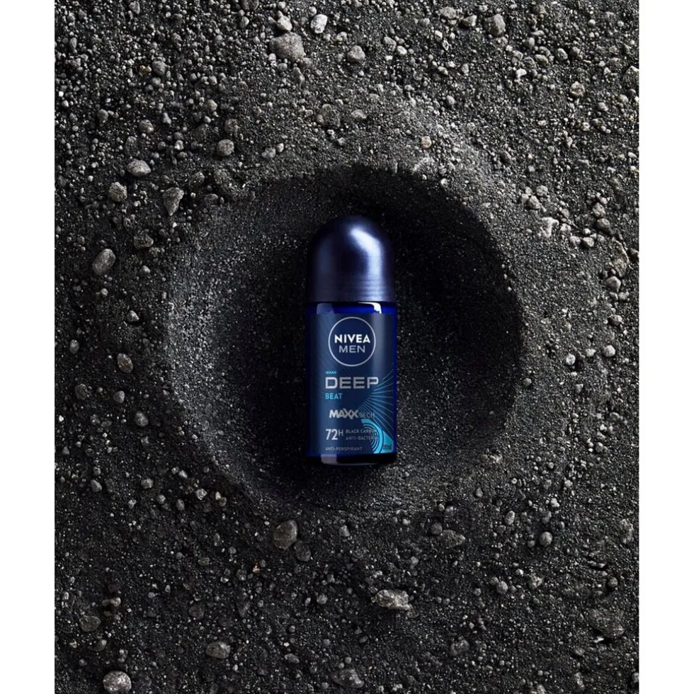De NIVEA Men Deep Beat Antitranspirant Roller met zwarte koolstof en de frisheid van een houtachtige harmonie zorgt voor een betrouwbare bescherming gedurende 72 uur.