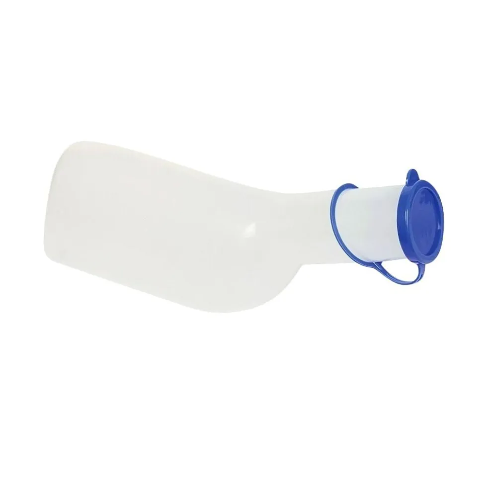 Het urinaal mannen is een handig hulpmiddel voor mensen die, om welke reden dan ook, niet naar het toilet toe kunnen. Voor mensen die bijvoorbeeld aan bed gebonden zijn, komt een urinaal goed van pas. Door een urinaal te gebruiken kunt u namelijk op uw plaats blijven liggen. Het urinaal heeft een inhoudstabel op de buitenkant en heeft een maximale inhoud van één liter. De urinaal is afsluitbaar met een deksel, die vast zit om de hals van de urinaal. Dit product is een medisch hulpmiddel.