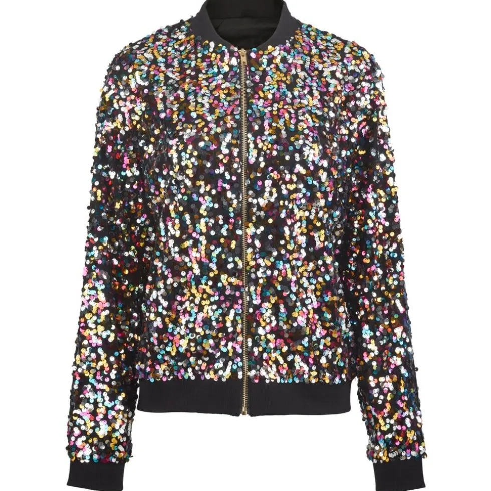 Til je carnavalsoutfit naar de next level met dit Pailletten Bomberjack! Dit trendy jack is volledig bedekt met glinsterende, gekleurde pailletten en geeft elke look een feestelijke touch. Perfect voor carnaval!