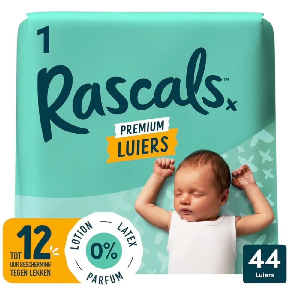 Rascals Premium Diapers, Size 1 | 44 Pack