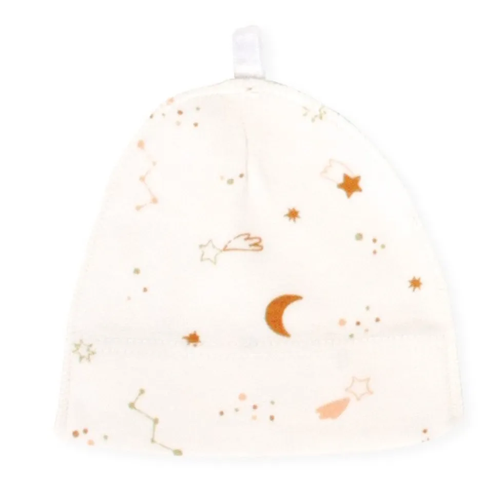 Het mutsje is gemaakt van 100% katoen, waardoor hij lekker zacht aan voelt.
