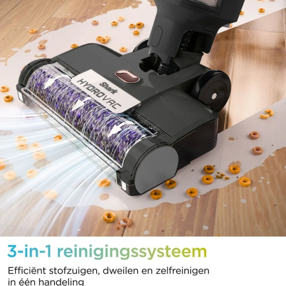 De HydroVac wordt geleverd met Shark’s vloerreinigingsoplossing voor meerdere oppervlakken. Deze oplossing maakt gebruik van geavanceerde geurneutraliserende technologie om zelfs de meest hardnekkige geuren op vloeren en karpetten te elimineren, zonder enig residu achter te laten. De antimicrobiële borstelrol voorkomt tussen schoonmaaksessies geurtjes en bacteriegroei, terwijl het continue zelfreinigingssysteem voorkomt dat vuil zich ophoopt op de vloeren.