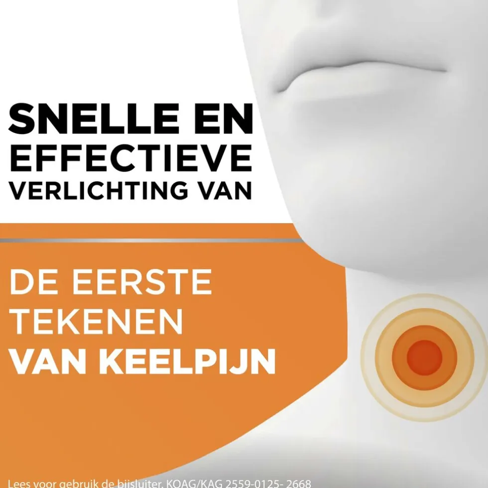 Samenstelling: Bevat per zuigtablet: 2,4-Dichloorbenzylalcohol 1,2 mg, Amylmetacresol 0,6 mg, Vitamine C 100 mg. Dit product bevat glucose (bevat tarwezetmeel en sulfieten (E220)), sucrose, bloedsinaasappelsmaak (bevat Citral, Citronellol, d-Limoneen, Geraniol, Linalool) en propyleenglycol.