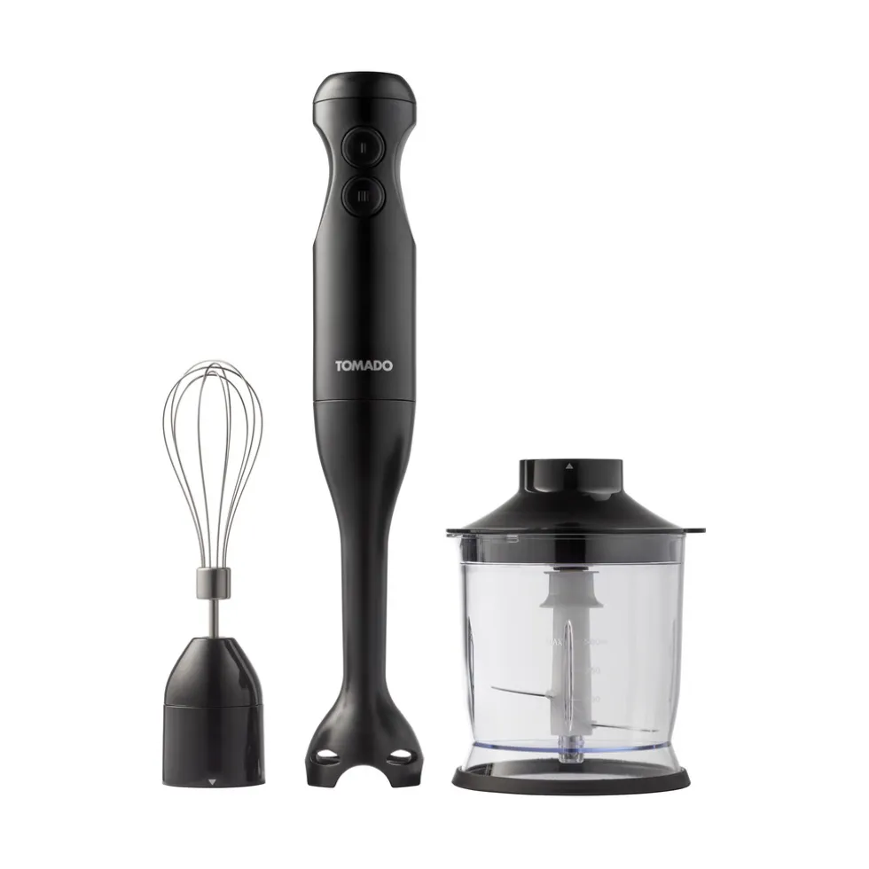 Met de Tomado TSB3501B staafmixerset mix, klop, hak, snijd en pureer je alle ingrediënten in een handomdraai. Deze staafmixerset is voorzien van een staafmixer, garde en een hakmolen met een inhoud van 500 ml. De messen van zowel de staafmixervoet als de hakmolen zijn gemaakt van roestvrijstaal. De staafmixer heeft 2 snelheden en dankzij de 350 watt motor zijn de ingrediënten snel gemixt. Om ervoor te zorgen dat de hakmolen stevig op het aanrecht blijft staan, is de hakmolen voorzien van anti-slipvoetjes aan de onderkant.