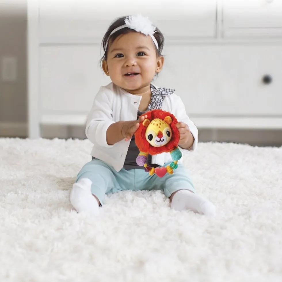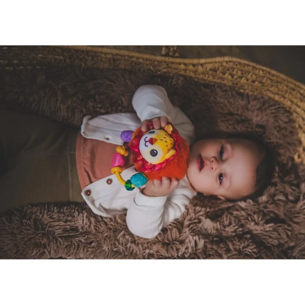 Rammel en knuffel met deze V-Tech Dierenvriendjes Rammelaar Leeuw! De verschillende materialen en texturen stimuleren de tastzin. De zachte, kleurrijke stof moedigt je kindje aan om met het leeuwtje te spelen.