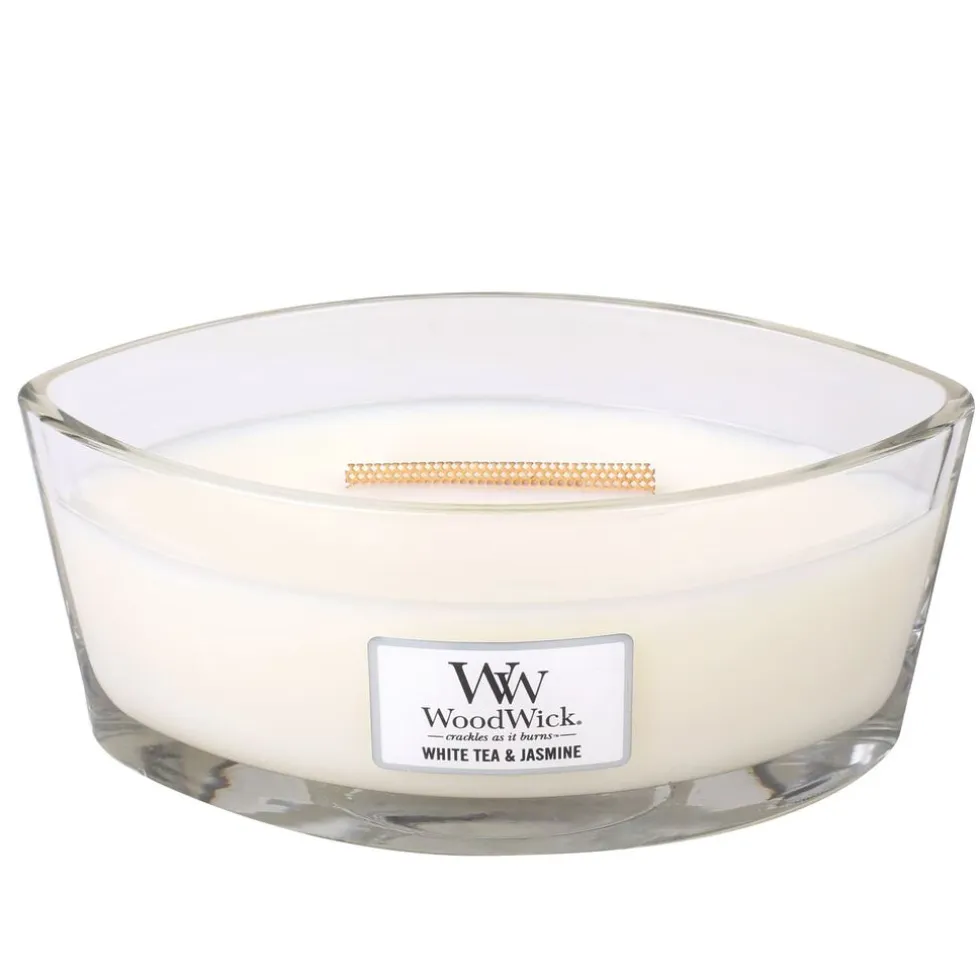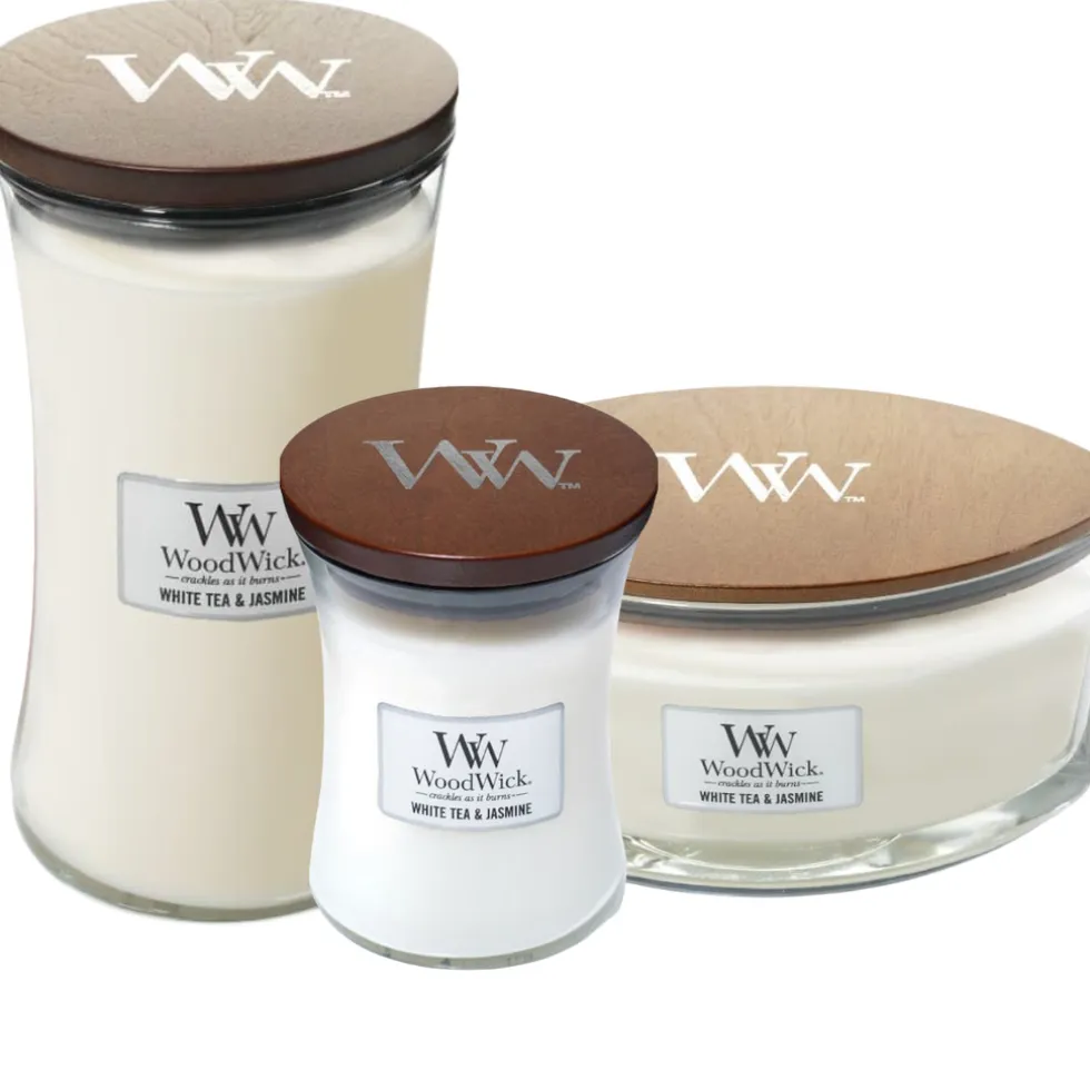 Kom tot rust met de heerlijke geur van witte thee & bloeiende jasmijn, met een vleugje roos & cedarhout. Deze geurkaars is ideaal voor wie van subtiele & florale geuren houdt.Door zijn gepatenteerde Pluswick® Innovation houten lont lijkt het net alsof je aan een knisperend haardvuur zit. Dat maakt deze luxueuze kaars uniek & extra sfeervol!Verras jezelf of iemand anders (cadeautip!) met de heerlijke geuren van WoodWick. Deze Medium Hourglass kaars brandt tot tot 60 uren.De geurkaarsen van WoodWick zijn gemaakt uit een mix van hoogwaardige paraffine & sojawas.Tip: gebruik het decoratieve houten deksel tijdens het branden als onderlegger. Heb je de kaars helemaal opgebrand? Dan gebruik je de glazen pot nadien toch gewoon als leuke koekjes- of snoeppot? (yay voor upcycling!)Geurnoten:• Top: bergamot, thee• Midden: roos, viooltje, jasmijn• Basis: cederhout, amber, muskusMet onze tips geniet je nog langer van jouw heerlijke geurkaars! • Steek je de kaars voor het eerst aan? Laat de bovenste laag kaarsvet dan volledig smelten. Doe je dit niet? Dan zal er een kuiltje rond de lont ontstaan waardoor de randen van de kaars niet smelten. Zo verlies je heel wat branduren!• Knip de lont van de kaars af op een halve centimeter. Maak je de lont korter? Dan zal de kaars onregelmatig branden.• Laat jouw kaars niet langer dan 3 tot 4 uren branden! Anders kan de geur in de bodem van jouw kaars verdampen. Snuif nog meer tips & tricks op in